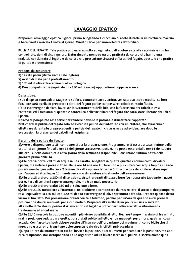 Il mese seguente il primo lavaggio epatico se ne deve fare un altro perch i dotti biliari sono pieni di altri