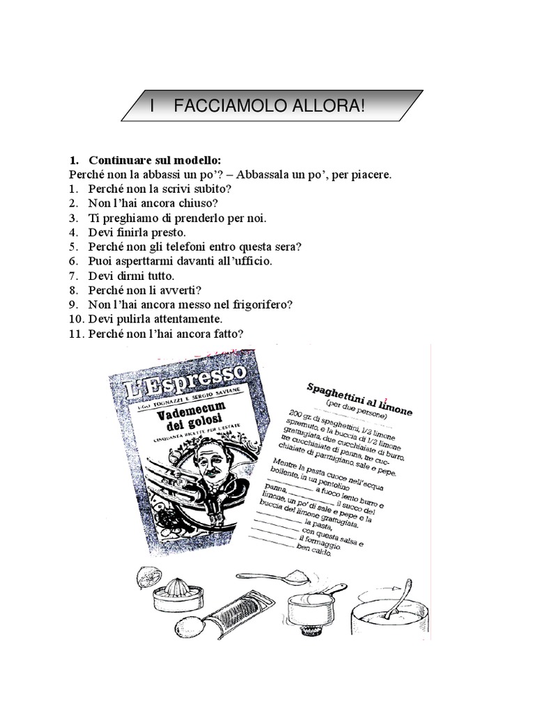 degli amici sinceri, ma ne dubito. 23. Ti ordino di andare a cucinare ci che