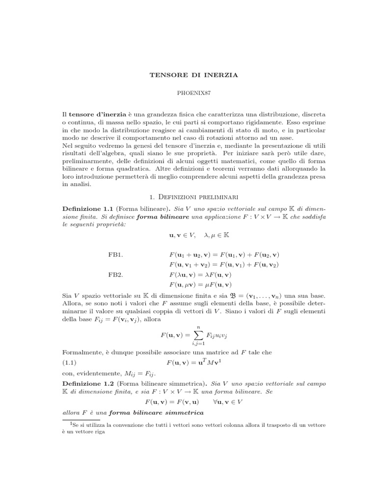 Nel seguito vedremo la genesi del tensore dinerzia e, mediante la presentazione di utili