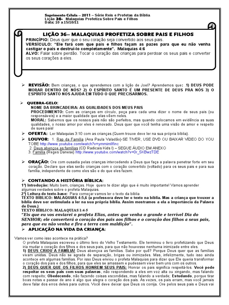 acontece em alHumas famlias. 4or isso Deus enviou o profeta *alaquias para di!er que 6le queria transformar