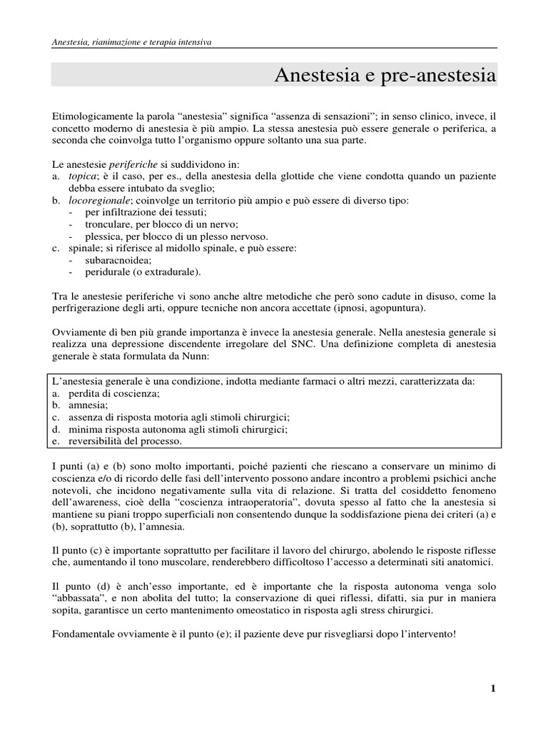 Ovviamente di ben pi grande importanza invece la anestesia generale. Nella anestesia generale si