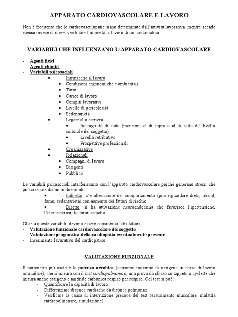 APPARATO CARDIOVASCOLARE E LAVORO