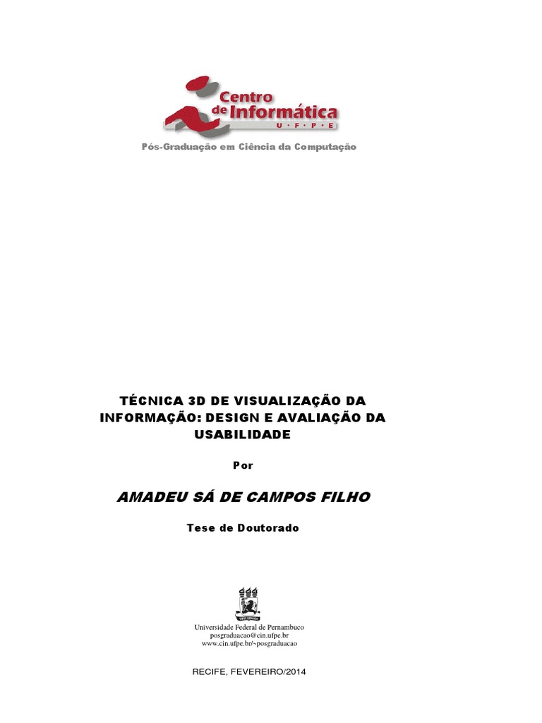 Campos Filho, Amadeu Sá de. Técnica 3D de visualização da informação: design e avaliação da usabilidade / Amadeu Sá de Campos Filho. – Recife: O Autor, 2014. 180 f.: fig., graf. quadro.