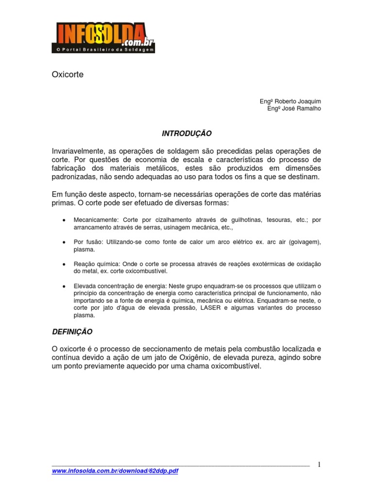 O oxicorte o processo de seccionamento de metais pela combusto localizada e