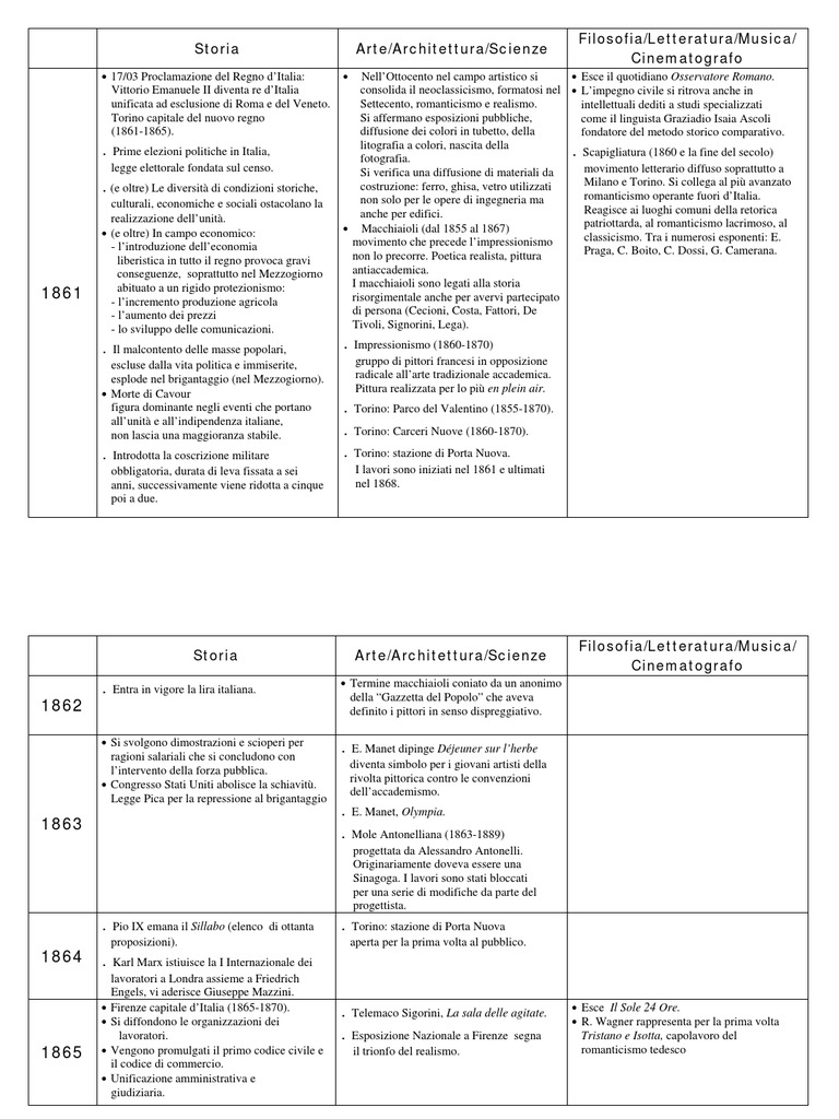 • Soppressi gli enti ecclesiastici, messi in . Impressionismo (1867-1880) • Karl Marx, Capitale (primo libro).