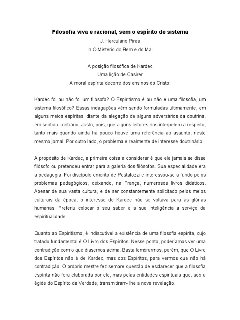 inegável, embora ele nunca se dissesse filósofo; que o Espiritismo possui uma