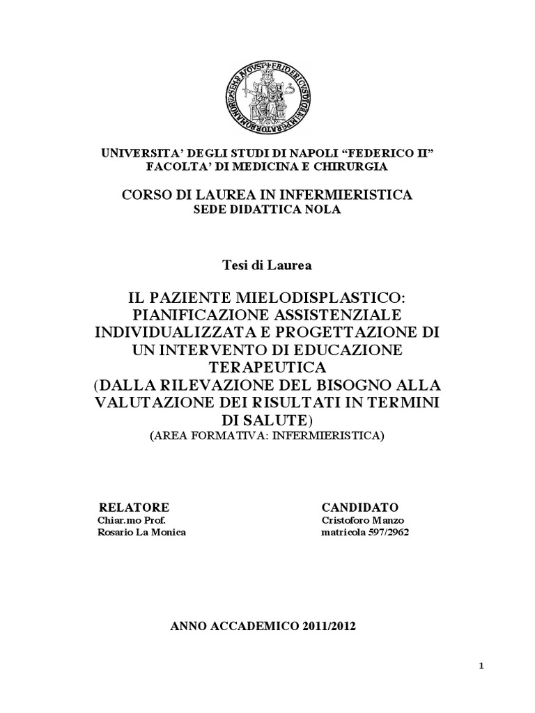 Mannina D, Pollicita M, ALECCI U: Le sindromi mielodiplastiche