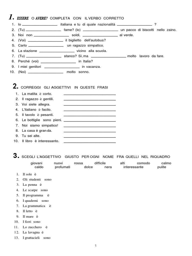 1. COMPLETA ILVERBO CON -ARE, -ERE O -IRE PER FORMARE L'INFINITO