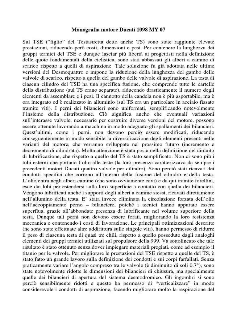 Monografia motore Ducati 1098 MY 07