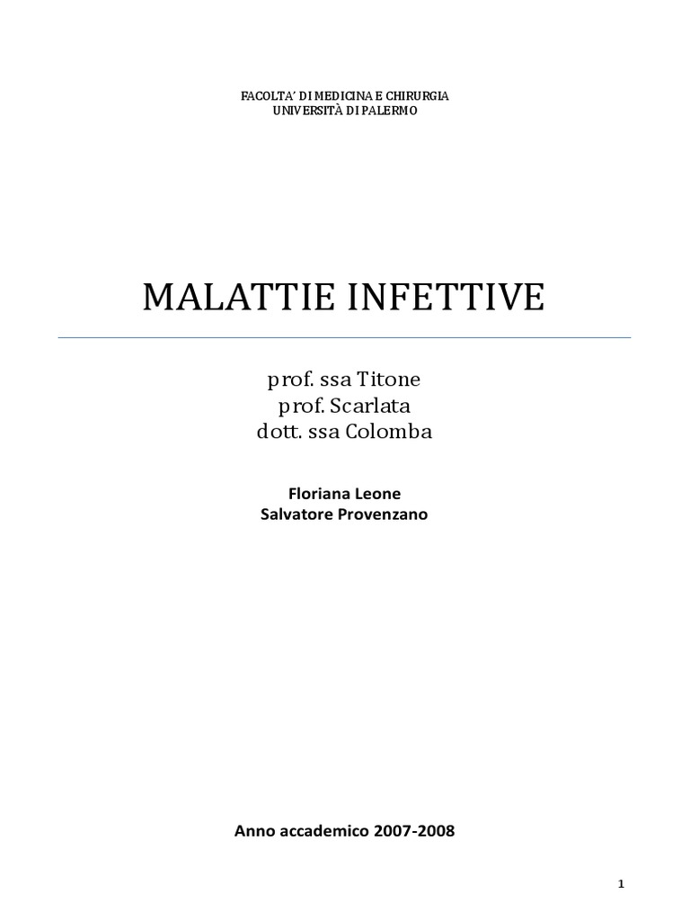 Con il termine di malattie infettive si intende un insieme di malattie causate che sono sempre