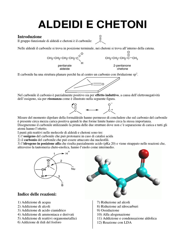 I punti pi reattivi nelle molecole di aldeidi e chetoni sono tre: