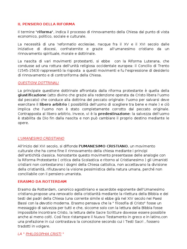 IL PENSIERO DELLA RIFORMA