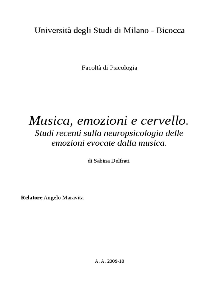 evocate dalla musica e lorganizzazione cerebrale alla base della loro elaborazione,