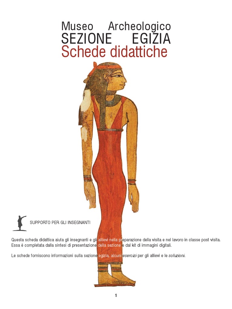 Le schede forniscono informazioni sulla sezione egizia, alcuni esercizi per gli allievi e le soluzioni.