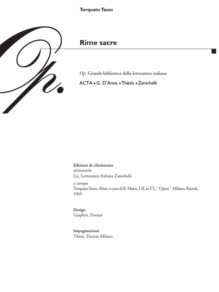 Torquato Tasso Rime sacre
