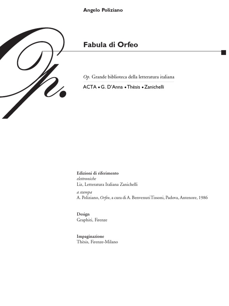 A. Poliziano, Orfeo, a cura di A. Benvenuti Tissoni, Padova, Antenore, 1986