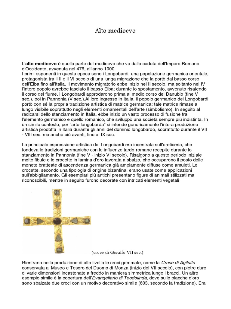 L'alto medioevo quella parte del medioevo che va dalla caduta dell'Impero Romano