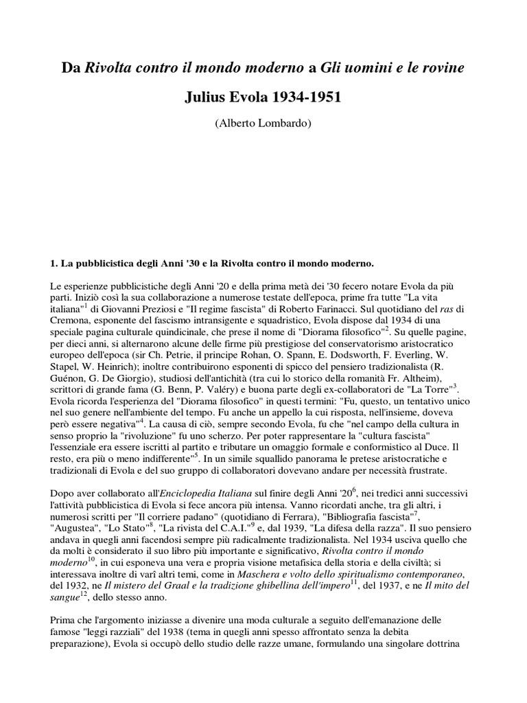42 Cfr. E. Erra, Il mistero di Evola, in G. De Turris, Testimonianze su Evola, cit., pp. 248-259; R. Del Ponte, L'attivit pubblicistica di Evola, cit.,