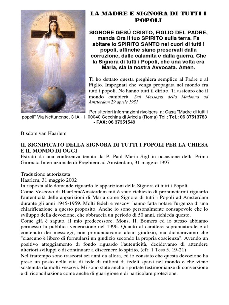 internazionale di preghiera della MADRE E SIGNORA DI TUTTI I POPOLI, si parli