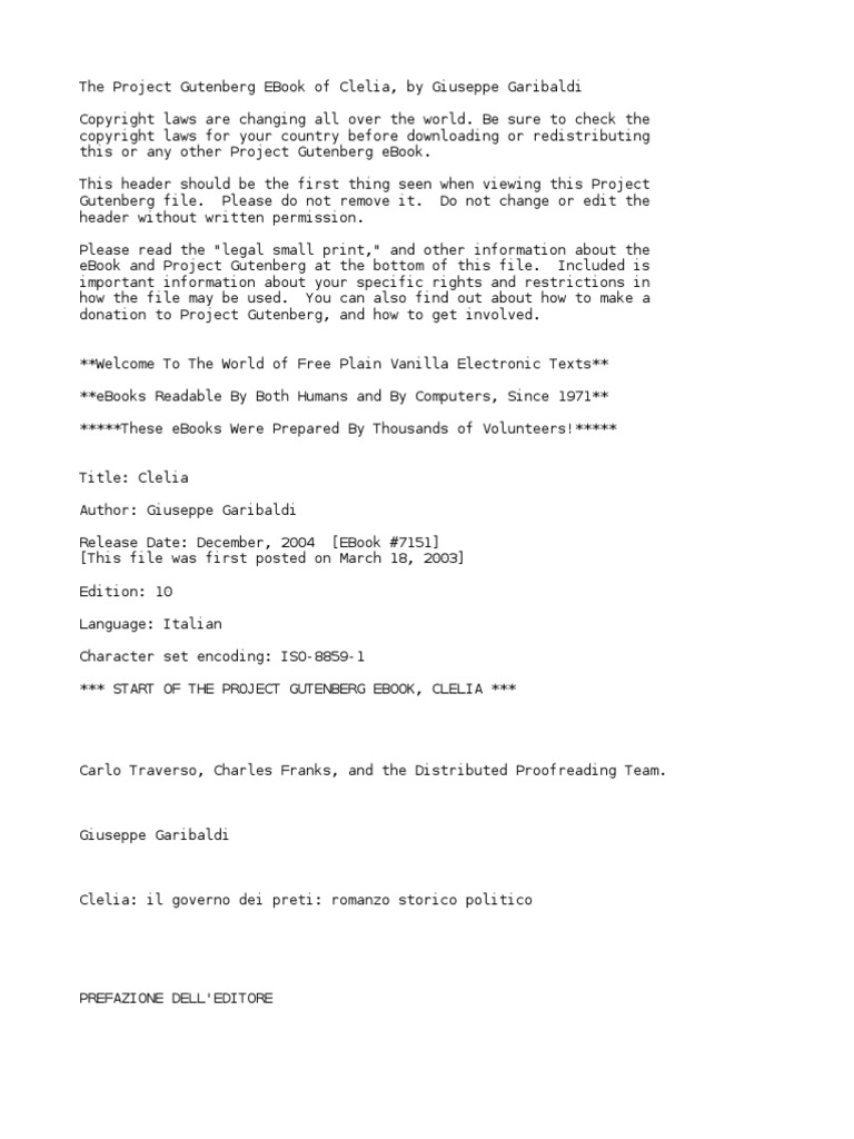 The Project Gutenberg EBook of Clelia, by Giuseppe Garibaldi