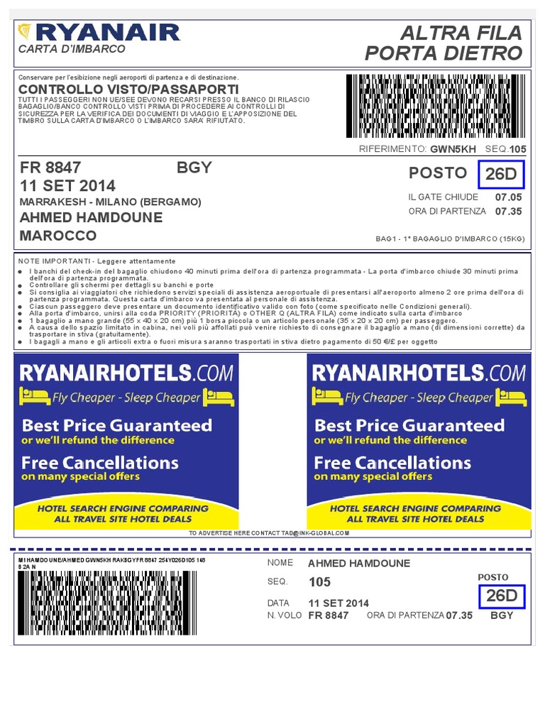 Conservareperl'esibizionenegliaeroportidipartenzaedidestinazione.