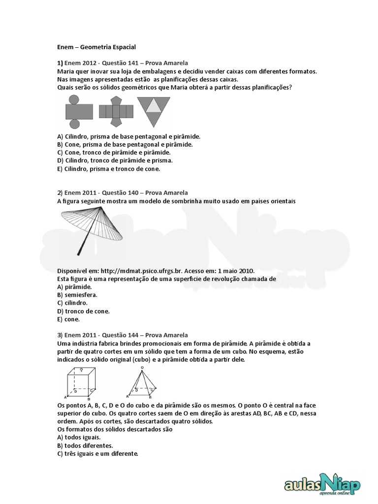 A fgura seguinte mostra um modelo de sombrinha muito usado em pai ses orientais