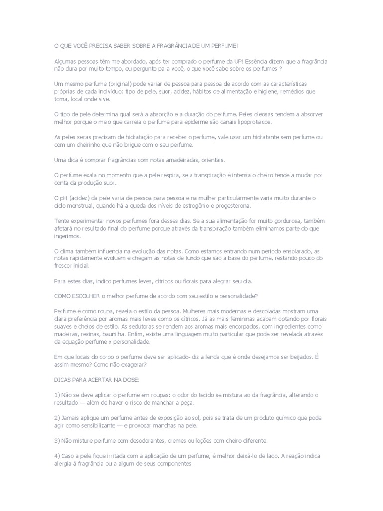 Algumas pessoas tm me abordado, aps ter comprado o perfume da UP! Essncia dizem que a fragrncia