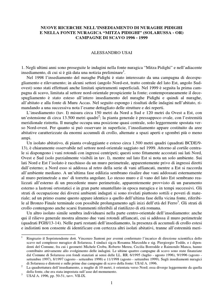 USAI A. 1996: A. USAI, Gli insediamenti nuragici nelle localit Muru Accas e Pidighi e la fonte nuragica Mitza Pidi-