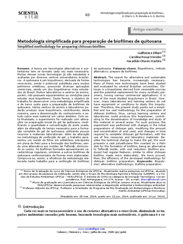 DILARRI, G.; MENDES, C. R.; MARTINS, A. O. Metodologia simplificada para preparao de biofilmes de quito-