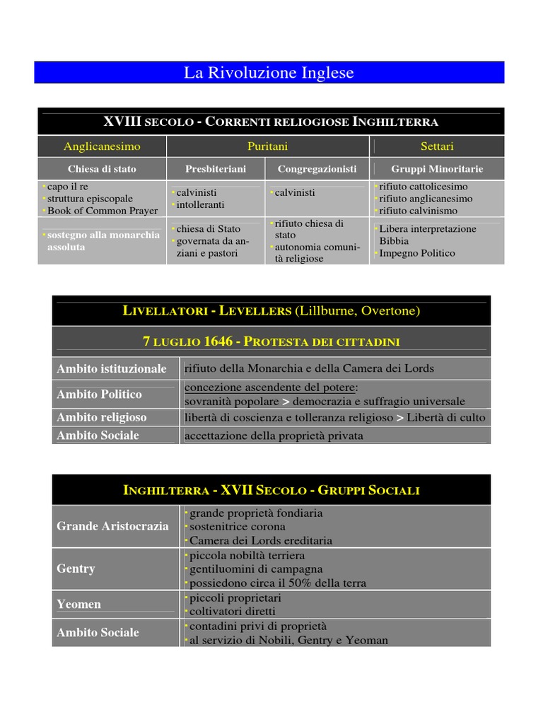 RIVOLUZIONE INGLESE: TABELLA CRONOLOGICA