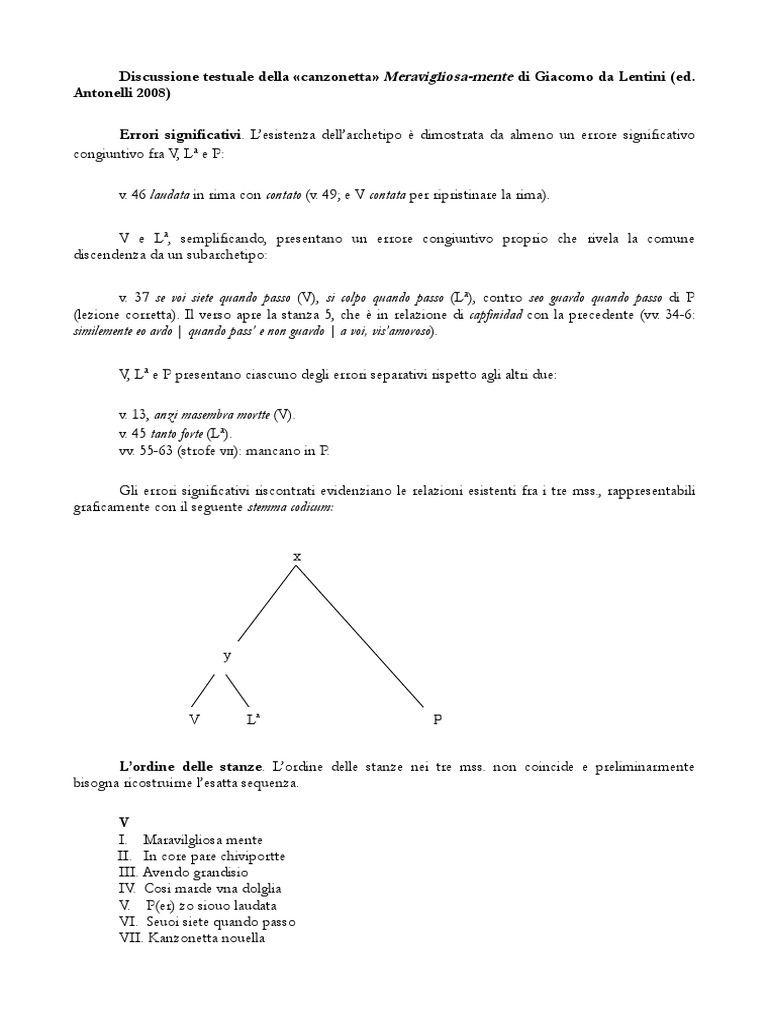 Discussione testuale della canzonetta Meravigliosa-mente di Giacomo da Lentini (ed.