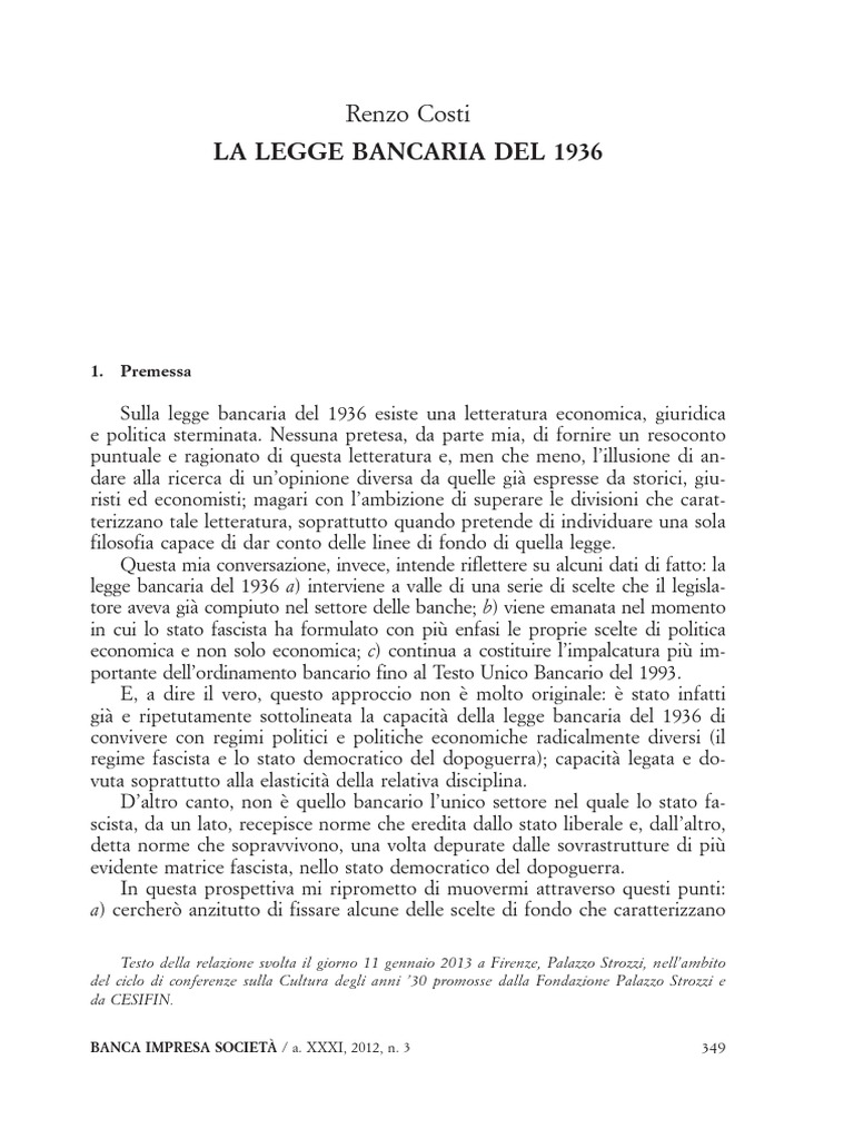Sulla legge bancaria del 1936 esiste una letteratura economica, giuridica