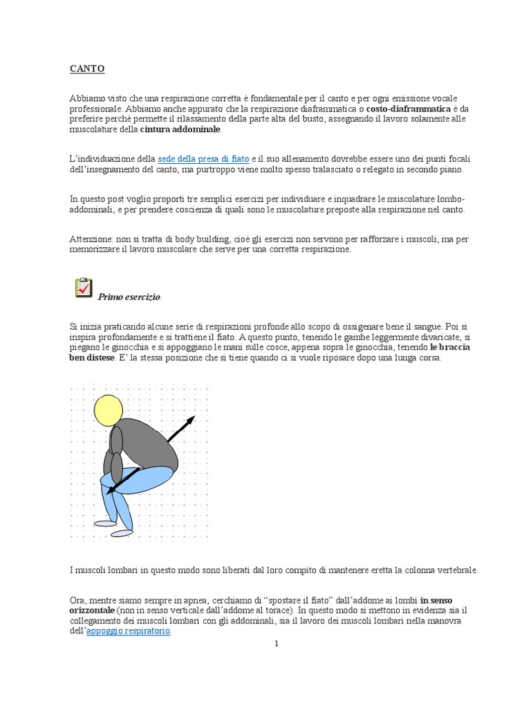 addominali, e per prendere coscienza di quali sono le muscolature preposte alla respirazione nel canto.