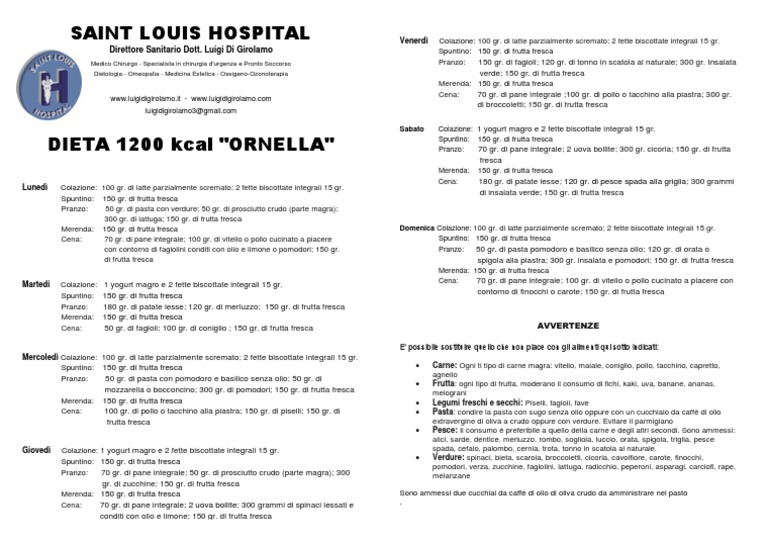 DIETA 1200 kcal "ORNELLA"