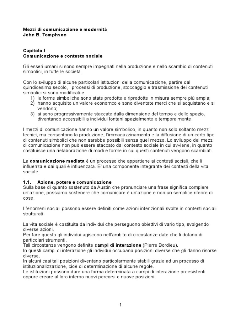 Mezzi Di Comunicazione e Modernità Thompson Riassunto