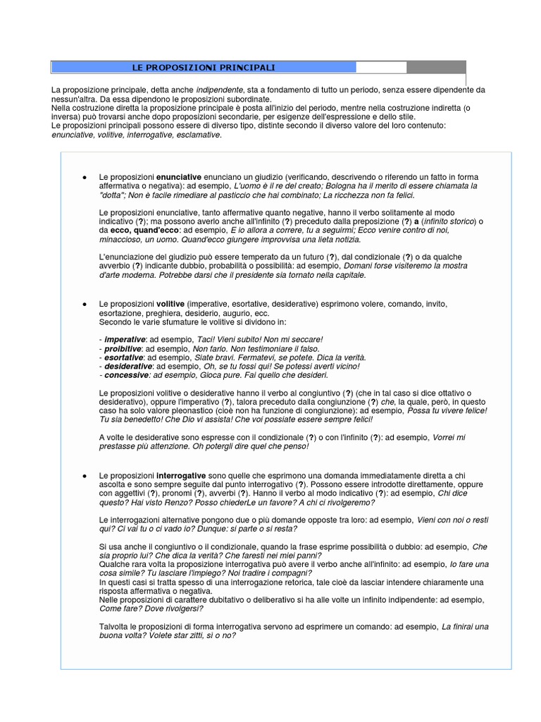 Le Proposizioni Principali