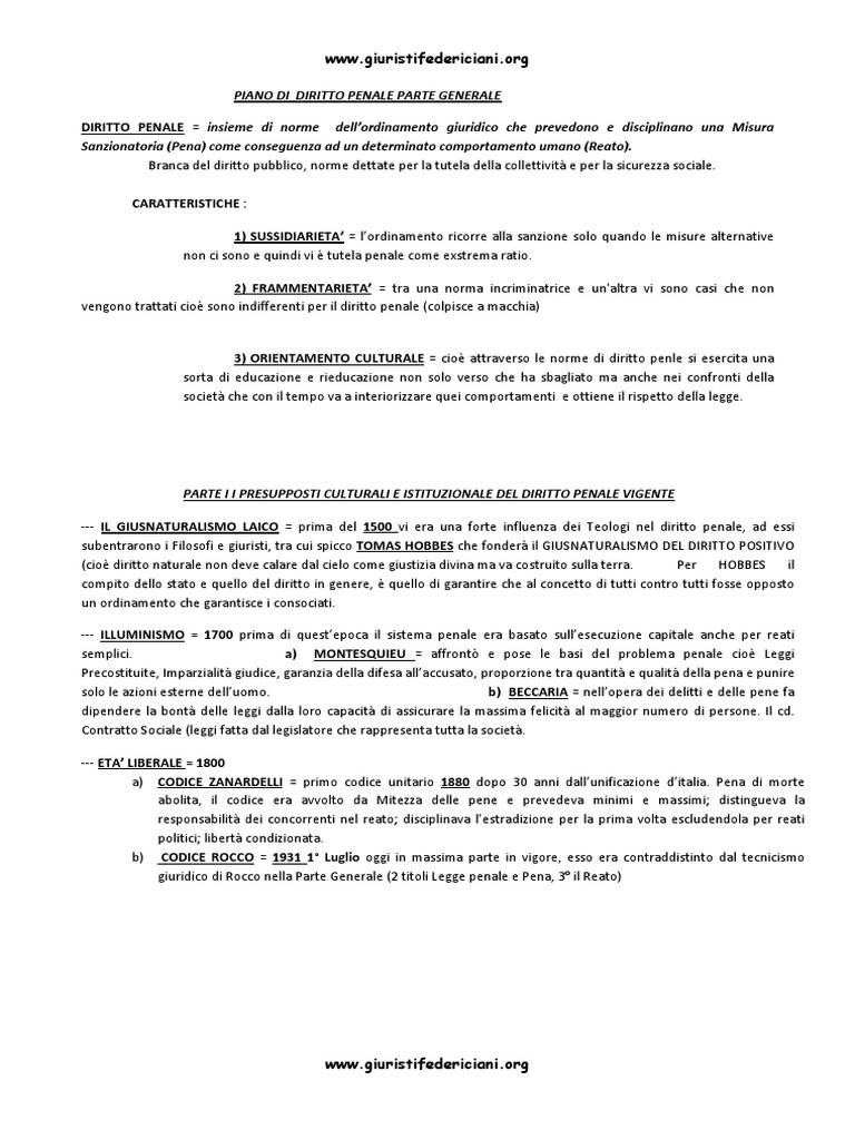 PIANO DI DIRITTO PENALE PARTE GENERALE