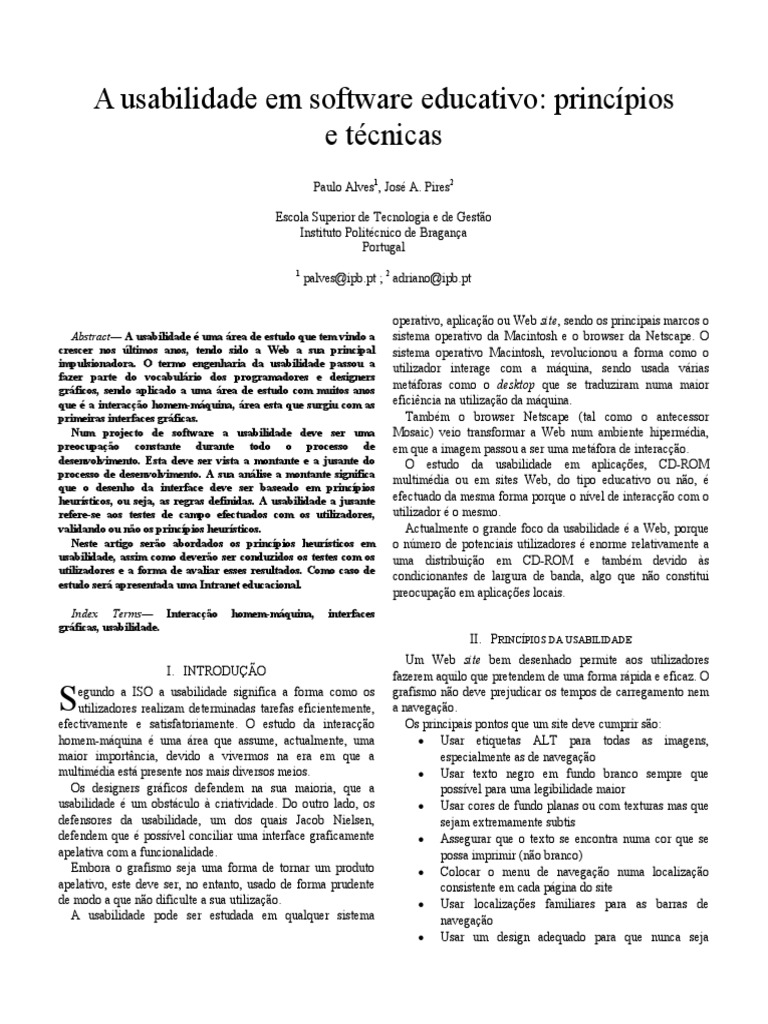 Abstract A usabilidade uma rea de estudo que tem vindo a