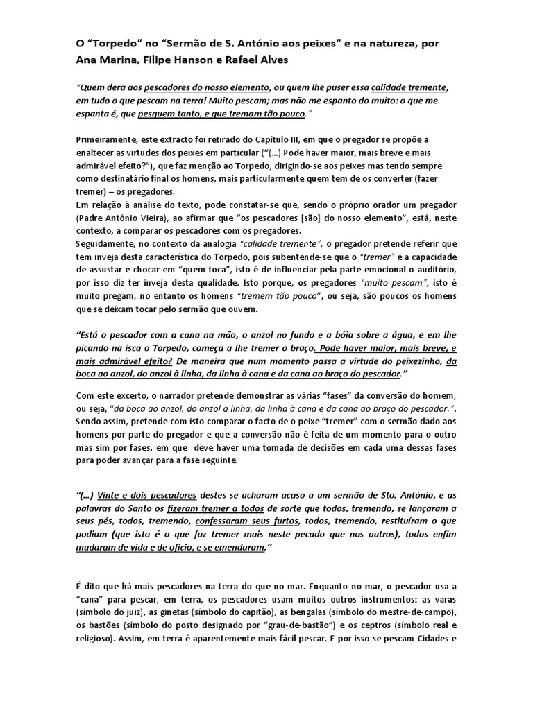 Sendo assim, pretende com isto comparar o facto de o peixe tremer com o sermo dado aos