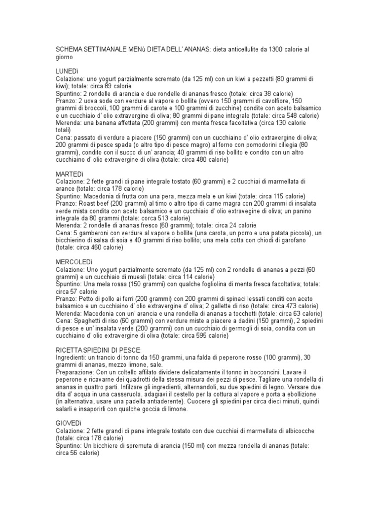 SCHEMA SETTIMANALE MEN DIETA DELL ANANAS: dieta anticellulite da 1300 calorie al