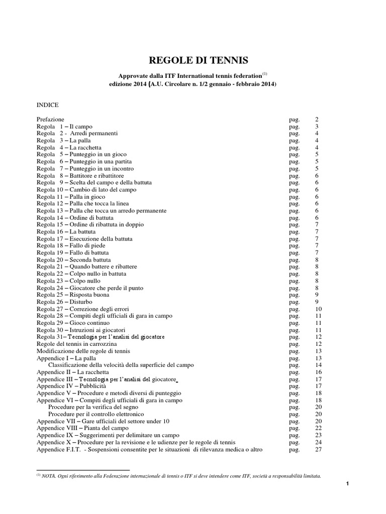 NOTA. Ogni riferimento alla Federazione internazionale di tennis o ITF si deve intendere come ITF, societ a responsabilit limitata.