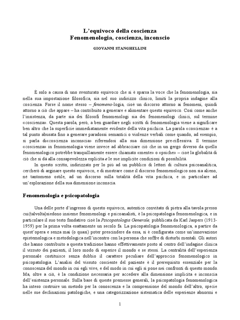 PAROLE CHIAVE: Coscienza, fenomenologia, inconscio, psicopatologia fenomenologica.
