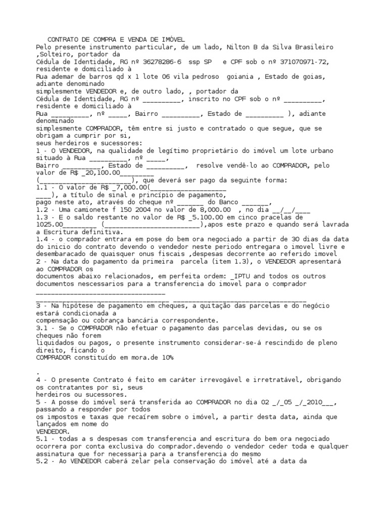 5 - A posse do imóvel será transferida ao COMPRADOR no dia 02 _/_05 _/_2010___,