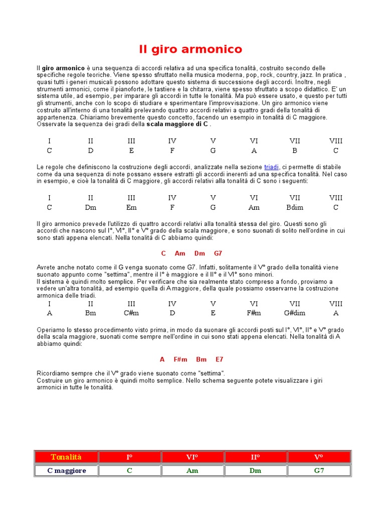 Il giro armonico una sequenza di accordi relativa ad una specifica tonalit, costruito secondo delle