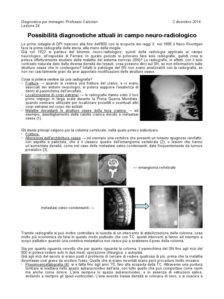 Gi nel 1922 si parlava del binomio neuro-radiologico, quindi della radiologia applicata al campo