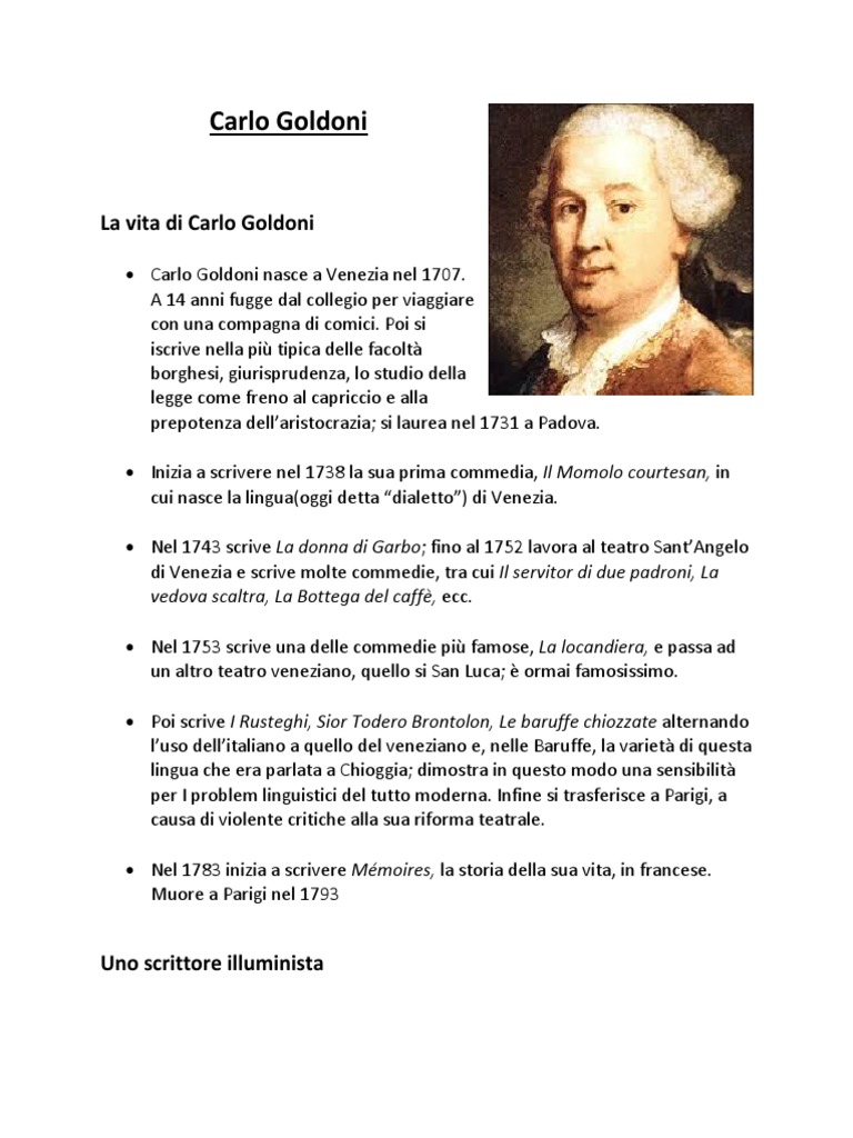 di Venezia e scrive molte commedie, tra cui Il servitor di due padroni, La