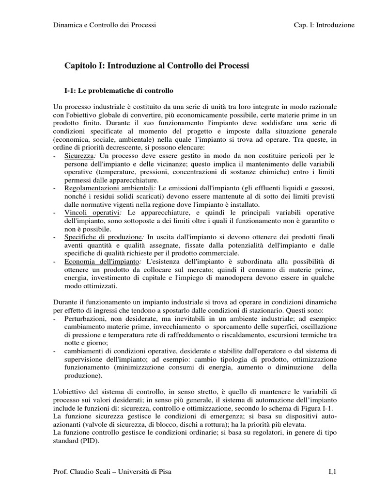 Capitolo I: Introduzione al Controllo dei Processi