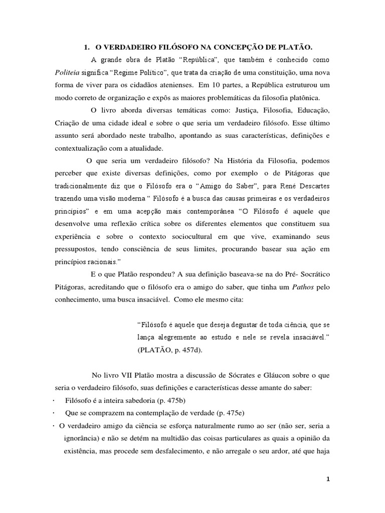 1. O VERDADEIRO FILSOFO NA CONCEPO DE PLATO.
