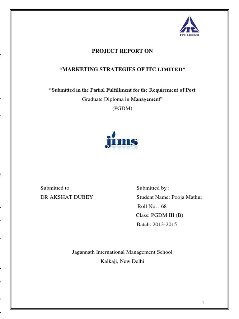 This project titled Marketing Strategies of ITC Limited. The researcher has