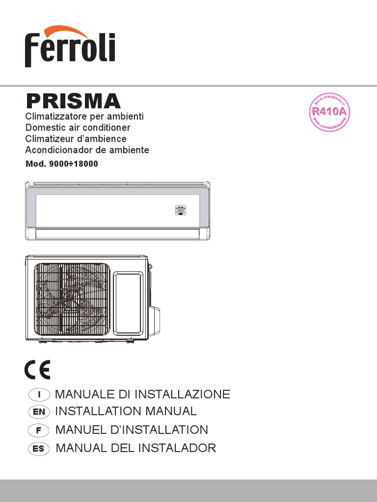Thank you for having purchased a FERROLI domestic air conditioner. It is the result of many years experience, particular research and has been made with top quality materials and higlly advanced technologies. The CE mark guaranteed thats the appliances meets European Machine Directive requirements regarding safety. The qualitative level is kept